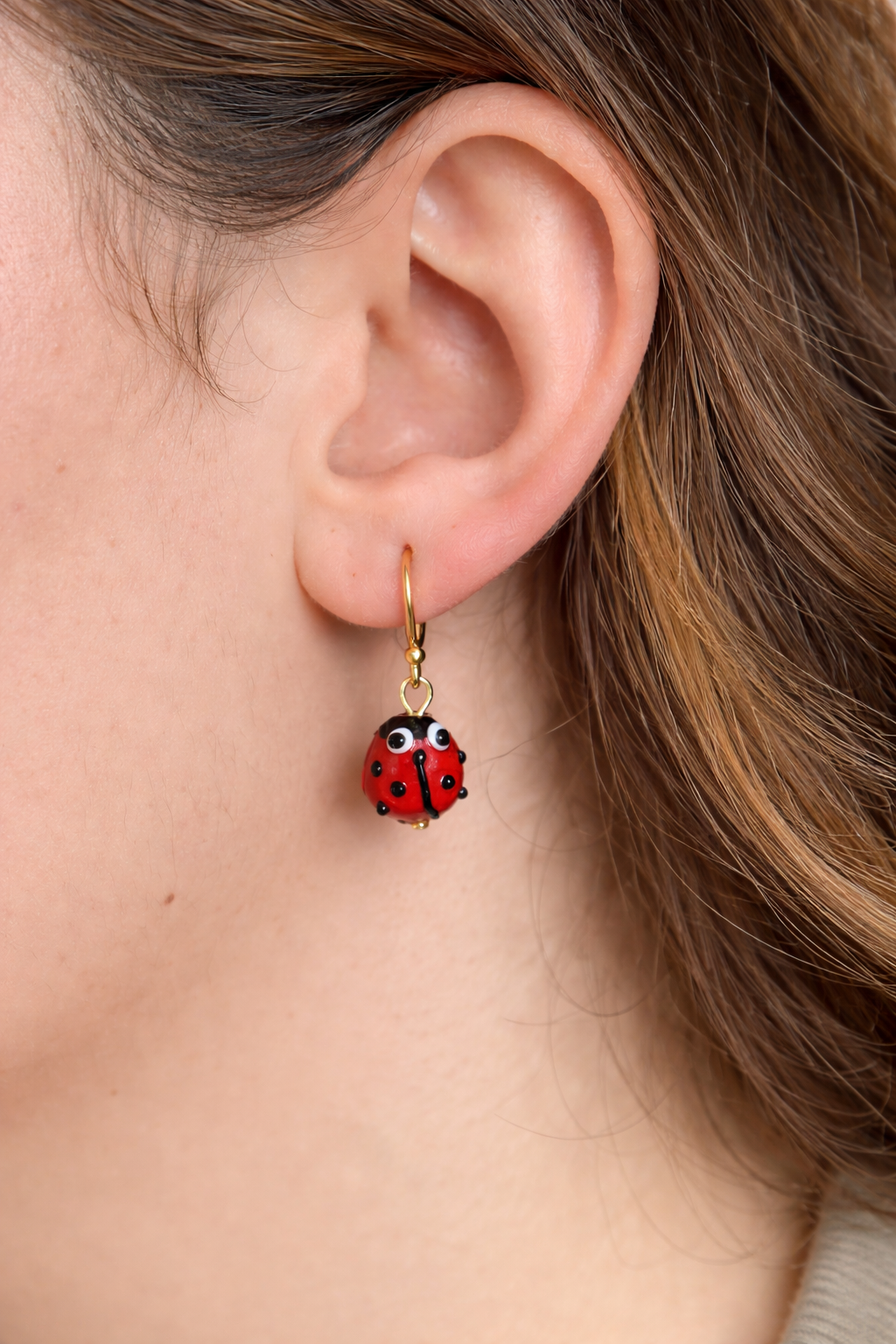 Liebevoll gestaltete Marienkäfer Ohrringe aus vergoldetem Sterlingsilber, ein verspielter Blickfang mit besonderer Bedeutung. Der detailreiche rote Marienkäfer steht für Glück, Schutz und positive Energie – ein Schmuckstück, das Freude schenkt und gute Laune verbreitet.